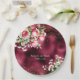 Elegante Hochzeitspapier-Teller mit Rose, bordeauxroter Folie und goldenem Glitzer-Hintergrund.
