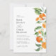 Orangenzitrus Hochzeitsfarbe Thema mit grünem Blattwerk. Text und Farben können bearbeitet werden.