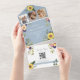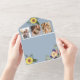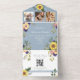 Feiern Sie Ihre Liebe mit dieser charmanten Dusty Blue Sonnenblume Blumen Hochzeit All-in-One Einladung. Dieses Öko-freundliche All-in-One-Design mit blühenden Sonnenblumen, lila Wildblumen und üppiger Vegetation eignet sich ideal für rustikale, sommerliche oder Hochzeiten im Herbst. Das komfortable Siegel-and-Sende-Format mit einer abnehmbaren RSVP-Karte ist für die Gäste selbstverständlich. Personalisieren Sie den Text und teilen Sie Ihre einzigartigen Hochzeitsdetails mit Leichtigkeit.