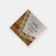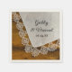 Fügen Sie Ihrem informellen und dennoch eleganten Stallhaus-Party-Brautparty oder Ehe-Empfang einen charmanten Akzent, wenn Sie die rustikale Country Lace und Barn Wood Wedding Paper Napkins mit den Namen der Braut und Bräutigam und Veranstaltungsdatum personalisieren. Diese lässigen und klassischen, nach dem Landhausstil oder in ländlichen Ranch gestalteten Einwegservietten verfügen über ein malerisches Foto eines Vintagen Spitzenhandtaschentuchs aus weißem Leinen mit braunem Holzhintergrund.