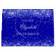 Ein königsblauer Hintergrund mit Konfetti, Glitzern. Personalisieren und ein Datum und den Namen der Bridesmaid.