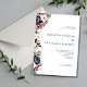 Schöne Aquarellblumen mit Bordeaux, Marinebar und Creme mit Grünpflanzen und Botanicalen. Fügen Sie Ihre Informationen hinzu, sind alle Felder editierbar. Machen Sie Ihre Hochzeit zu erinnern mit dieser schönen eleganten Einladung.