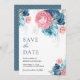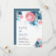Hochzeit von Dusty Blue Pink Floral Rose Save The Date