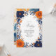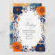 Set den Ton für Ihre Hochzeit mit dieser atemberaubenden Marine und orange Blumen Einladung. Dieses Design mit zarten Aquarellfarben und eleganter Typografie eignet sich hervorragend für Hochzeiten im Garten oder im Freien. Der lebhafte Kontrast von Marine und Orange fügt eine moderne Touch hinzu, während die sanften Blumen das Design zeitlos und romantisch behielt. Ideal für Paare, die zeitgenössischen Stil mit klassischem Charme verbinden möchten.