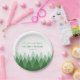 Diese Teller sind perfekt für jedes Paar, das eine rustikale Waldhochzeit plant. Das Design zeichnet sich durch eine trendige, ombre, waldreiche Palette in Grün auf einem weißen Hintergrund mit farblich koordinierter bearbeitbarer Formulierung aus. Das einfache Design kann personalisiert sein, um Ihre besondere Veranstaltung zu Anzug und wird das perfekte Zubehör für jedes rustikale Thema Party, einschließlich: Brautparty, Verlobungen, Polterabende, Geburtstagspartys und vieles mehr.