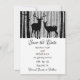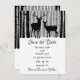 Diese rustikale Winterwald Save the Date Hochzeitsankündigung bietet eine Silhouette Doe und Buck Reh Paar. Sie sind an einem winterlichen Tag im Schnee an einem Strang von Aspen stehend. ^