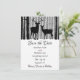 Hochzeit von Hirsch und Bäumen im rustikalen Winte Save The Date
