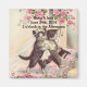 Mit einer sehr charmanten Vintagen Abbildung einer Katzenbraut und eines Bräutigams, die in Hochzeitskleidung und niedlichen Rose gekleidet sind, umgeben von einer individuell anpassbaren Save the Date Vorlage, sodass Sie sie mit dem Designwerkzeug personalisieren können.