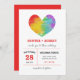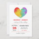 Watercolor Stolz Herz Hochzeit Einladung für eine homosexuelle oder lesbische Hochzeit mit einem riesigen Herz gefüllt mit Aquarelltextur in Regenbogenfarben. Stolze Hochzeitseinladung mit Stolz und moderner Typografie.