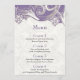 Hochzeit von lila und weißen Blumen Menükarte