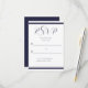 Eine elegante Navy und White Wedding Reply Card für Ihr Hochzeitspaket. Der Text auf der Vorderseite ist mit Marinetext und -trim konzipiert und enthält: UAWG, Your Response By Date, sowie Platz für Gäste, die ihren Namen angeben möchten. Die Rückseite ist ein klassischer marinierter Hintergrund. Um eine persönliche Note zu erhalten, ersetzen Sie einfach den Beispieltext mit unserer einfachen Vorlage. Schauen Sie sich unbedingt die gesamte Hochzeitskollektion von Navy und White Floral Leaf an.