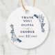 Mit einem eleganten marineblauen Blumendesign können diese Gastgeschenk Hochzeit Dankesmarken mit Ihren Namen und einem besonderen Datum personalisiert werden. Entwickelt von Thisisnotme©