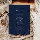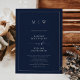 Hochzeit von Navy Blue Elegant Border & Monogram Einladung