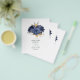 Die trendige Hochzeitseinladung der Marine in Blau, Gold und Silber mit eleganter Typografie, die auf Ihre Veranstaltungsspezifikationen zugeschnitten ist. Ideal für jede Art von Thema oder Gartenhochzeit. Umschläge sind nicht enthalten. Für dickere Einladungen mit Umschlägen und passenden Produkten zum selben Thema lesen Sie bitte die unten stehende Kollektion.