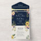 Hochzeit von Navy Blue Rustic Sunflower All In One Einladung