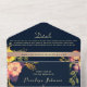 Feiern Sie Ihre Liebe mit dieser marineblauen Hochzeitsveranstaltung, die moderne Eleganz mit botanischem Charme verbindet. Mit zarten Aquarellblumen, lebendigen Sonnenblumen und rustikalen Details vereint dieses Design das perfekte Gleichgewicht von Eleganz und Wärme. Entspannen Sie sich mit einem Foto des Ehepaares, Ihren Hochzeitsdetails und dem UAWG für ein nahtloses und stilvolles Gasterlebnis. Eine bezaubernde Wahl für eine fröhliche und romantische Feier. Bitte beachten Sie: Diese Einladung erfordert einen separaten Briefumschlag.