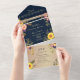 Hochzeit von Navy Blue Rustic Sunflower All In One Einladung
