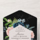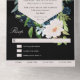Hochzeit von Navy Blue und Blush auf Black Floral All In One Einladung
