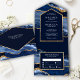Hochzeit von Navy Blue und Gold Agate All In One Einladung