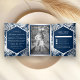 Hochzeit von Navy Blue und Silver Foil Tropical Pa Dreifach Gefaltete Einladung