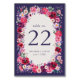 Tischnummer der Hochzeit von Navy mit Flora. Mit diesen eleganten Tischnummern, die einen blumengeschmückten Kranz in Aquarelltönen in Rosa, Bordeaux, Blues und lila Set vor einem dunkelblauen Hintergrund bieten, können Sie bequem Platz finden. Personalisiert mit Ihren Namen und Ihrem Hochzeitsdatum, ist dieses Design perfekt für jede Jahreszeit - mit einer gemütlichen, romantischen Touch für Herbst- und Winterhochzeiten oder einem frischen, lebendigen Gefühl zu Frühlings- und Sommergarten-Feiern. Diese Tischnummern sind vollständig anpassbar und sorgen für ein nahtloses und abgestimmtes Design im Empfang. HINWEIS: Der Text ist Navy Blue, um die Sammlung zu entsprechen, kann aber leicht geändert werden.
