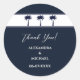 Mit dieser personalisierten Hochzeitsfeier an der Küste fügen Sie Ihren Lieblingen eine Touch der Eleganz am Meer hinzu. Dank des Stickerei-Sticks, das mit einem schicken grafischen Design aus drei marineblauen Palmen und klassisch-blauen Streifen besticht. Dieses tropisch inspirierte Design ist ideal für eine Palmenhochzeit oder eine Strandhochzeit und kombiniert elegante Typografie und Kalligraphie-Script-Schriftart, um ein raffiniertes und entspanntes Küstenambiente zu schaffen. Ideal, um Ihren Gästen stilvoll zu danken, sei es für Taschen, Schachteln oder Umschläge - dieser Dankeschön-Aufkleber ist eine wunderschöne Touch für Ihre am Meer inspiriert Feier.