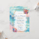 Elegante Pastellfarben thematische Hochzeitseinladungen. Weich pastellrosa und blass blaues Wasser mit Akzenten von Seestern, Muscheln, Seepferden und tropischen Blume. Wasserfarben Strand Hochzeit Thema.