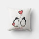 Personalisierter Hochzeitspinguin mit Pullon-Kissen für frische Weds. Das Design zeigt ein Pinguinpaar, das einen roten Herzballon hält. Die Namen, das Hochzeitsjahr und die Rückmeldung können alle mit der Personalize-Funktion geändert werden. In diesem niedlichen illustrierten Design sind auch passende Karten erhältlich.
