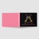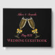 Ein Hochzeitsgast-Buch, das perfekt für eine moderne, glamouröse Hochzeit in Gold, Rosa und Schwarz mit passenden Champagnergläsern und einem individuell gestaltbaren Hintergrund geeignet ist. Text und Hintergrundfarbe können vollständig angepasst werden.
