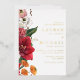 Fügen Sie Ihrer Hochzeitsarbeit eine glänzende Touch mit dieser Blumeneinladung mit echter Folientext hinzu. Wählen Sie zwischen Goldfolie, Goldfolie der Rose oder Silberfolie, um die weichen Aquarellfloralen zu ergänzen, darunter rote Amaryllis und rosa Ranunculus. Die warme Farbpalette passt wunderschön zu der reflektierenden Folie und sorgt für ein romantisches Ambiente. Ideal für Weinbergshochzeiten, feierliche Gartenveranstaltungen oder Herbstfeiern. Personalisieren Sie das Layout, die Schriftart und den Wortlaut einfach, um Ihre Hochzeitsvision Anzug zu geben.