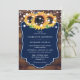 Diese blumenblauen Hochzeitseinladungen sind ideal für eine rustikale Hochzeitsfeier, die von Sonnenblumen wird.