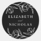Elegante florale Hochzeitsaufkleber mit weißen Blume und Blätter mit schwarzem Hintergrund. Personalisieren Sie die gezeichneten Blumenaufkleber mit Ihren Namen. Die Blumenaufkleber eignen sich hervorragend zum Abdichten von Hochzeitsumschlägen, Gastgeschenke Hochzeiten und vielem mehr! Entworfen, um mit unserer Hochzeitskollektion Sketched Floral zu koordinieren.