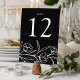 Elegante Blumenkarten mit weißgezeichneten Blume und Blätter am unteren Ende des Designs mit schwarzem Hintergrund. Personalisieren Sie die gezeichneten Blumenkarten mit der Tischnummer in klassischer Weißschrift. Um die Tischkarten zu bestellen, editieren und fügen Sie jede Zahl einzeln in Ihren Warenkorb ein, dann Karo aus, wenn Sie fertig sind. Entworfen, um mit unserer Hochzeitskollektion Sketched Floral zu koordinieren.