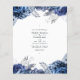 Navy und weiße Blume Hochzeitseinladung mit Akzenten von Silber. Ideal für eine Gartenhochzeit oder ein bestimmtes Thema. Bitte beachten Sie, dass diese Einladung auf Flyer Papier ist und sehr dünn ist. Umschläge sind nicht enthalten. Für dickere Einladungen zum gleichen Thema mit Umschlägen, siehe unten die Kollektion.