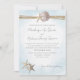 Boho Beach Seestern und Jute Zwirn Einladung Hochzeit mit blauem Aquarell Hintergrund. Sand Dollars und Seesterne und Naturjute Seile Design Strand oder Hochzeit in Urlaubsort Einladung mit einem weichen luftigen Gefühl, personalisieren Sie Text und Schriftart, um Ihren Stil Anzug.