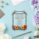 Einzigartige Hochzeitseinladungen mit einem Thema aus Silber und Kupfer-Metall-Steampunk. Rustikale Metallgestänge und orangefarbene Blume in Herbstfarbe mit einem silbernen Metallrahmen auf dieser durchsichtig bogenförmigen Acryl-Hochzeitseinladung.