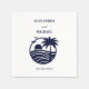 Mit diesen personalisierten Hochzeitszeitszettel, die eine schicke grafische Gestaltung einer marineblauen Palme, die Sonne über dem Ozean und friedliche Vögel, die alle von einem Marinekreis umgeben sind, umgeben sind, und einem stilvollen, weißen Hintergrund, verleihen Sie Ihrem besonderen Tag eine Touch Eleganz. Dieses Design ist perfekt für eine Palmenhochzeit oder eine Hochzeit am Strand geeignet und verbindet tropischen Charme mit elegantem Stil. Die elegante Typografie kombiniert kalligraphische Schrift mit sauberen Schriftart und macht diese Papierservietten zu einer wunderschönen und praktischen Ergänzung zu Ihrem Strandfest.