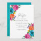 Eine Hochzeit mit floralen Wasserfarben lädt mit handgeschriebener Typografie und türkisfarbenem Wasserfarbenwaschbecken zum Verweilen ein, das schnell und einfach auf Ihre Veranstaltungsspezifikationen zugeschnitten ist.