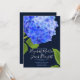 Hellblaue Wasserfarbe Hydrangeas auf dunkelblauem Hintergrund. Suchen Sie nach passenden Karten und Party-Produkten.