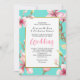 Stilvolle Blumen Hochzeit Einladung vom Frühling inspiriert, mit Kirschblüte gegen Türkis.