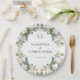 Diese schöne Papiertafel für einen Hochzeitsempfang ist mit einem wunderschönen Blumenmuster aus weißem Rosengarland um den Tellerrand herum gestaltet. Die personalisierten Monogramme der Braut und des Bräutigams sitzen oben. Die personalisierten Namen der Braut, des Bräutigams und des Hochzeitsdatums können auch leicht an den Anzug angepasst werden. Diese herrlichen Teller sind nicht nur praktisch und Öko-freundlich, sondern auch von dem zauberhaften Blumendesign und dem mit Monogramm Logo der Braut und des Bräutigams beeindruckt.