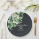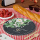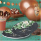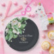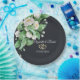 Weiße Blume und goldene Herzen auf schwarzem Hintergrund.