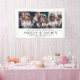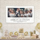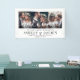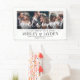 Willkommen Hochzeitsgäste zu Ihrer Zeremonie oder Ihrem Empfang mit einem eleganten 3 Foto Collage Banner. Bilder und Text sind einfach zu personalisieren. (IMAGE PLACEMENT TIP: Eine einfache Möglichkeit, ein Foto genau so zu zentrieren, wie Sie es gewollt haben, ist es, es einzuschneiden, bevor Sie es auf die Zazzle-Website hochladen.) Das moderne minimalistische Schwarz-Weiß-Design bietet drei Bilder Ihrer Wahl, eine schicke handgeschriebene Schrift-Kalligrafie, elegante Vintage Typografie und anpassbare Botschaften, die lauten: "Willkommen zu unserem glücklichen aller Zeiten" und "Danke, dass Sie mit uns gefeiert haben". Dieses Hochzeitszeichen ist eine stilvolle Möglichkeit, Verlobung-Bilder zu teilen und gleichzeitig eine individuelle Touch zu Ihren besonderen Tagesdekorationen hinzuzufügen. Herzlichen Glückwunsch an die Braut und Bräutigam!