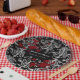 Hübsche Party Teller in einem dunkelgotischen Stil. Diese passen zu meinem Halloween-Vampir-Set. Sie sind ein schwarzer, heller bis dunkelgrauer Damast mit einem Etikett, das auf sie passt. Blut-Spritzer zieren sie. Sie können alle gewollt Designelemente entfernen. Setzen Sie sie auf Wunsch nach Anzug um.