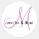 Hochzeitbride Groom Lila-White-Monogram-Aufkleber Runder Aufkleber