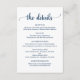 Hochzeitdetails, rustikales blaues Skript der Mari Begleitkarte