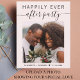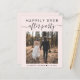 Günstige hellrosa Unterkunft oder private Hochzeitsankündigung und Empfang oder Feier Party Einladung. Die Vorderseite zeigt "Happily Ever After Party" in der modernen Typografie und ein stilvolles Drehbuch mit Swashes, Ihrem Foto, Namen und Hochzeitsdatum. Auf der anderen Seite, personalisieren Sie Ihre Heiratsankündigung und Empfang-Einladung detaillierter, laden Sie Ihre Hochzeitswebsite QR-Code hoch, damit Sie Ihre Hochzeitsfeier, alle Einzelheiten und UAWG online sehen können, und fügen Sie Ihre Namen in einem signaturähnlichen Skript.