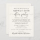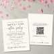 Ankündigung Datum freihalten für einen Empfang oder ein Party zum Feiern Ihres Auftritts oder einer kleinen privaten Hochzeit. "Save the Date für unser glückliches Ende des Party" ist in einfacher Typografie und einem eleganten Drehbuch mit Swashes geschrieben. Personalisieren Sie Ihre Hochzeitsankündigung im Detail und fügen Sie Party oder Empfang Save the Date Details und Ihre Namen in einem signaturähnlichen Skript. Auf der anderen Seite geben Sie die URL Ihrer Hochzeitswebsite ein, um einen QR-Code für Gäste zu erstellen, um mit Ihren Hochzeitsfeiern und Fotos behalten, und fügen Sie Ihre Vornamen und Hochzeitsdaten und Empfang Daten.