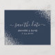 Mit dieser eleganten marineblauen und silbernen Hochzeitsfeier können Sie Ihre Hochzeitsfeier in Blau und Silber feiern und die Dattelkarten mit funkelnd silbernen Glitzer auf marinebasischem Hintergrund speichern. Einfach online personalisieren. Passende Artikel zur Ergänzung dieser modernen, Save the Date Postkarte.