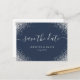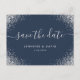 Mit diesen minimalistischen, aber eleganten Hochzeitskarten kündigen Sie Ihre Hochzeitsfeier in Blau und Silber Save the Date an. Einfach online personalisieren. Matching Artikel zur Verfügung, um diese moderne marineblau und silberne Glitzer Hochzeit speichern das Datum Postkarte.